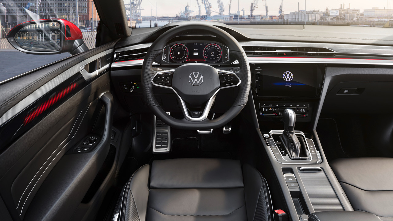 Nowością jest ponadto możliwość bezprzewodowego korzystania z aplikacji – umożliwia to App Connect Wireless dla Apple CarPlay i Android Auto (Google). Innym nowym urządzeniem we wnętrzu Arteona i Arteona Shooting Brake jest wysokiej klasy 700-watowy system audio firmy Harmann/Kardon opracowany specjalnie do tych modeli. Całości dopełnia dostępny opcjonalnie system stylowego oświetlenia wnętrza z 30 kolorami światła do wyboru. Podświetlane są dekoracyjne panele na tablicy rozdzielczej i drzwiach – światło pełni tu rolę, jaką do niedawna spełniał chrom. Techniczne innowacje zastosowano nie tylko w silnikach, lecz także w dziedzinie systemów asystujących IQ.DRIVE. Nowością w Arteonie jest Travel Assist umożliwiający częściowo automatyczną jazdę w przedziale prędkości od 0 do 210 km/h. Dzięki niemu kierowca może znacznie wygodniej i bezpieczniej poruszać się w korku oraz w miejscu robót drogowych. Elementem systemu Travel Assist jest aktywny tempomat ACC z wyprzedzeniem regulujący prędkość jazdy. Dostosowuje on prędkość do znaków ograniczenia, zmniejsza ją w terenie zabudowanym, w zakrętach, na rondach i skrzyżowaniach odpowiednio dopasowując do sytuacji na drodze. W ramach systemu Travel Assist działają też funkcja Lane Assist, dzięki której samochód jest utrzymywany na środku wyznaczonego pasa ruchu, oraz system awaryjnego hamowania Front Assist z funkcją rozpoznawania obecności pieszych na jezdni.
