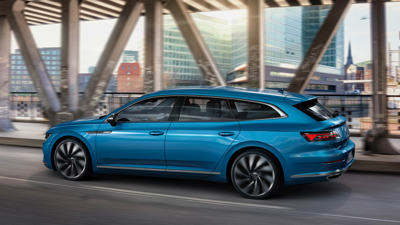 Marco Pavone, szef działu Volkswagena zajmującego się stylistyką zewnętrzną, zauważa: „W przypadku Arteona Shooting Brake, mocno przedłużyliśmy linię dachu, a w raz z nim linię bocznych szyb, z kolei błotniki poszerzyliśmy, dzięki temu tył auta wydaje się masywniejszy. Ten zabieg sprawił, że mimo całej funkcjonalności pięciodrzwiowego samochodu Shooting Brake sprawia wrażenie auta sportowego”.