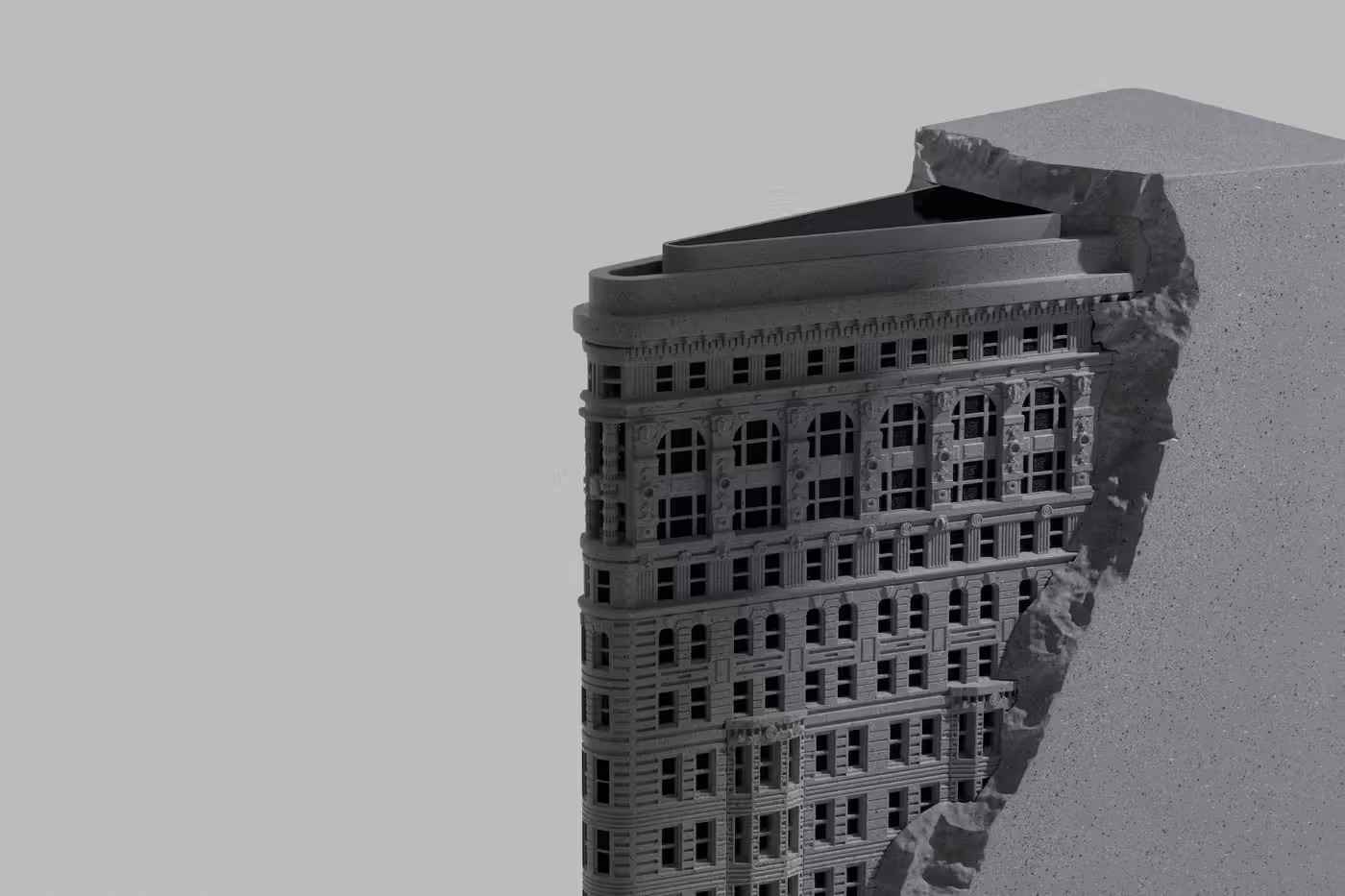Sprzęt audio nie jest czymś, czego większość ludzi oczekuje od Takahiro Miyashity — projektanta, który założył NN07 przed założeniem własnej wytwórni o tej samej nazwie — ale głośnik Flatiron jest tak samo wyjątkowy i odważny, jak jego ubrania i akcesoria. Być może dlatego głośnik nie ma prostego kształtu słynnego trójkątnego budynku znajdującego się przy 175 Fifth Avenue. Zamiast tego wygląda bardziej jak skalowana wersja 22-piętrowej konstrukcji częściowo otoczonej blokiem niszczejącego betonu.