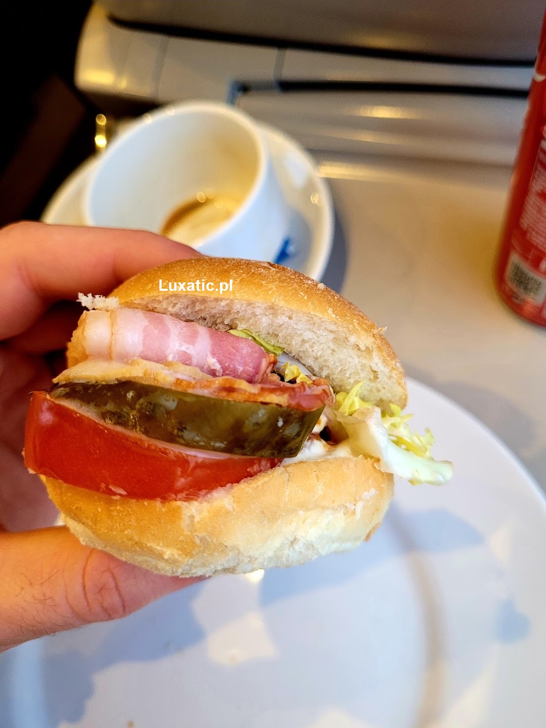 O ile Coca-Cola smakowała tak jak można się domyślić to kawa była najzwyczajniej słaba, niestety czuć było, że esencja, którą pani z WARSu przelewała do filiżanek z dzbanka była przygotowana z ziaren niskiej jakości.