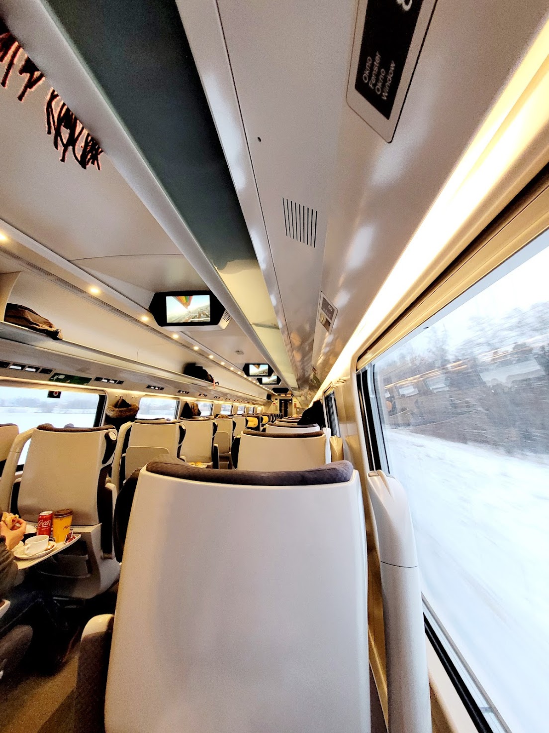 Po wyjeździe z Warszawy zaczął się serwis. Na pierwszy ogień miła pani z WARSu zaproponowała napoje – ja zdecydowałem się na Coca-Colę oraz kawę.