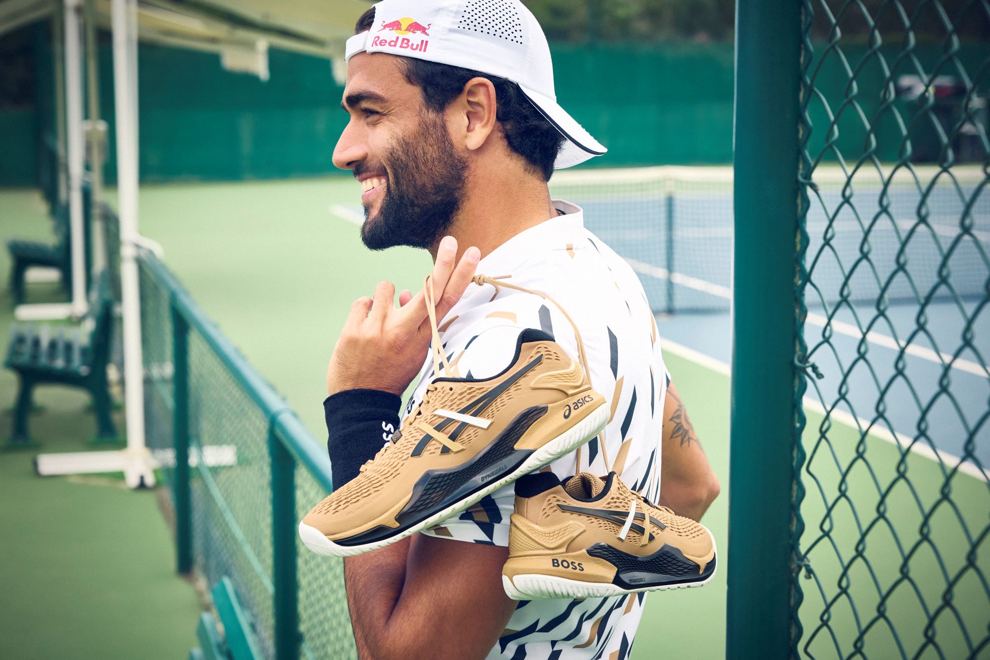 To, co wyróżnia tę ekskluzywną wersję, to świeży design, łączący świat sportu i mody. Limitowany but tenisowy prezentuje elegancką oraz nowoczesną estetykę, zawierającą ponadczasowe elementy designu BOSS. Współpraca na linii ASICS-BOSS oddaje istotę wyrafinowanego i dynamicznego stylu Matteo Berrettiniego, odzwierciedlając jego pasję zarówno do tenisa, jak i mody.